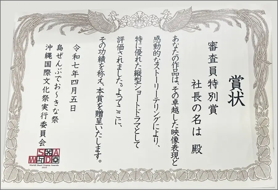 働く人が誇りを持ち、自らの仕事に胸を張れる組織づくりに挑み続けてきた姿勢が評価され、本作品は沖縄国際文化祭にて審査員特別賞を受賞。